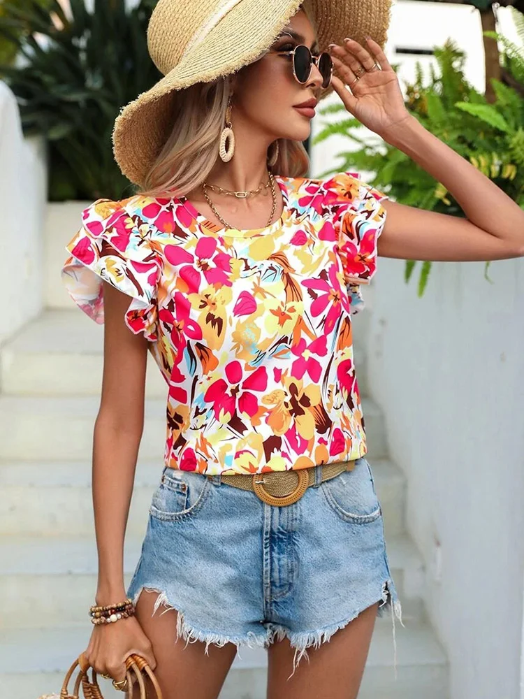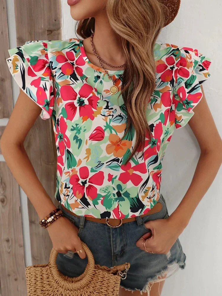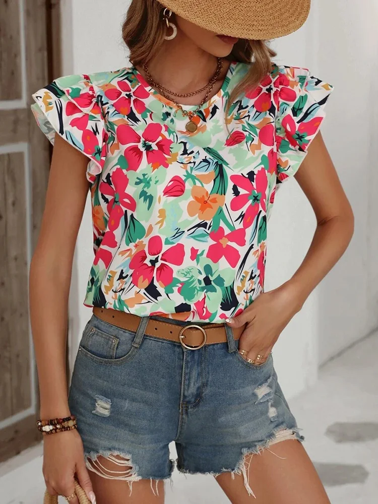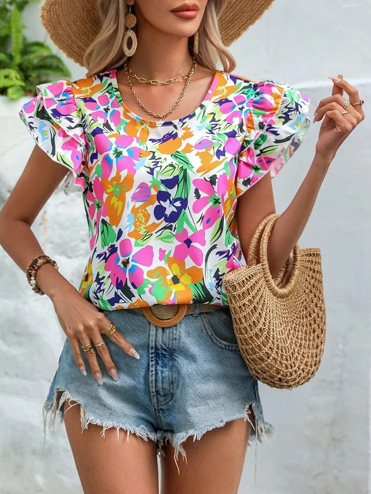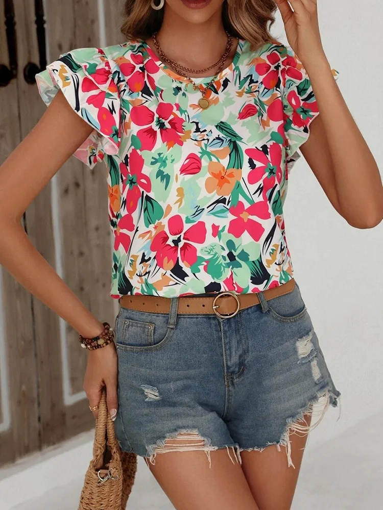 Floral Blouses O Neck