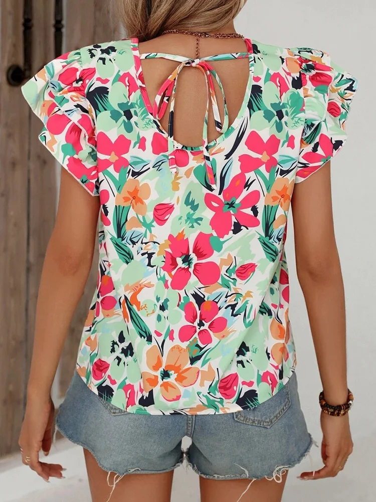 Floral Blouses O Neck New Arrivals T-Shirts & Blouses