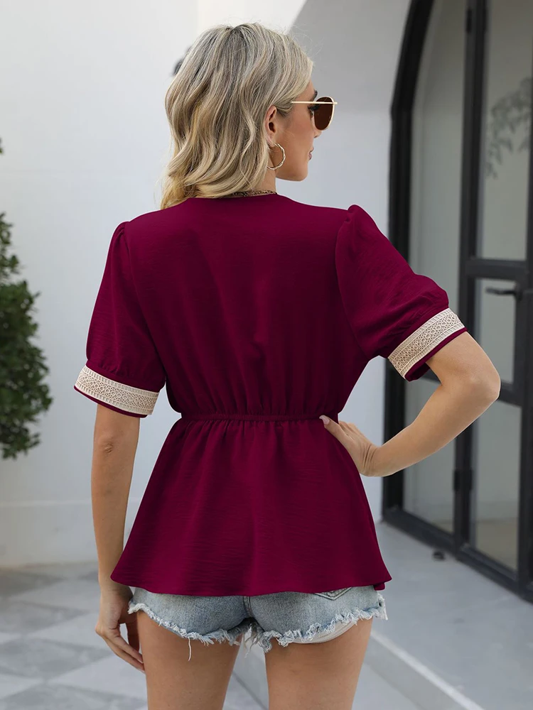 Casual Blouses V-Neck for Women New Arrivals T-Shirts & Blouses Color: Burgundy Size: S|M|L|XL|XXL
