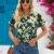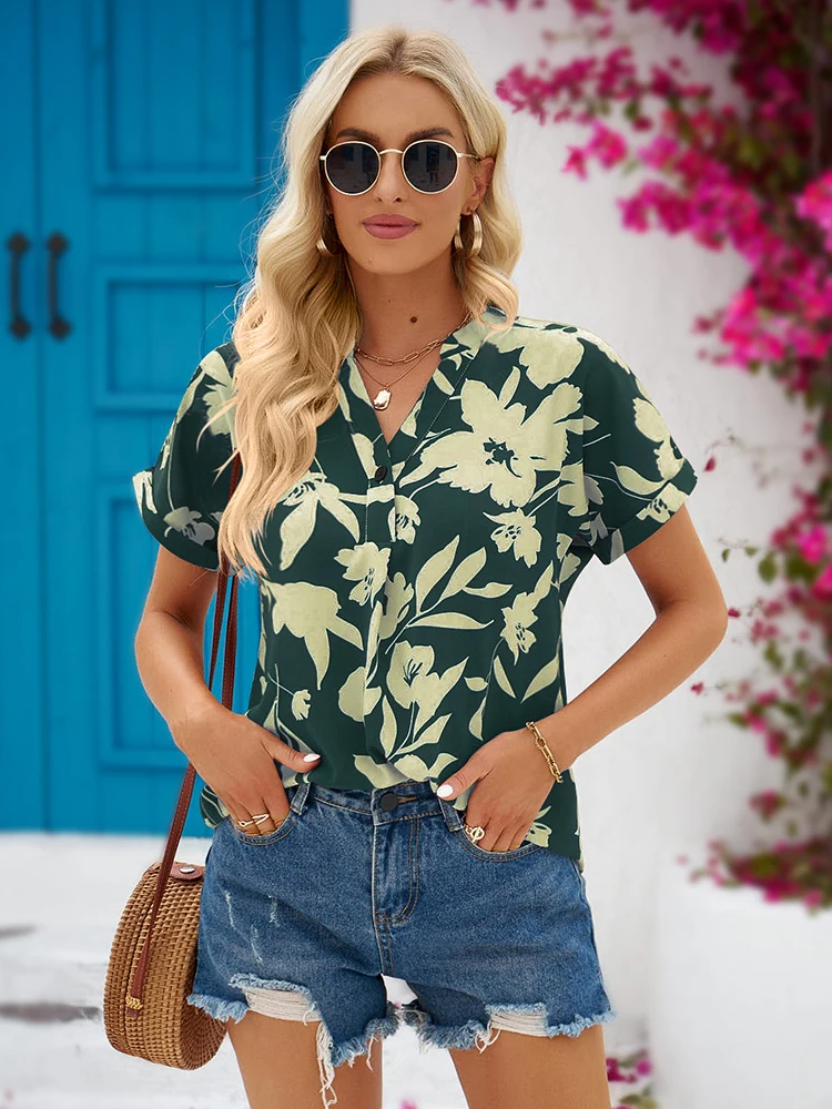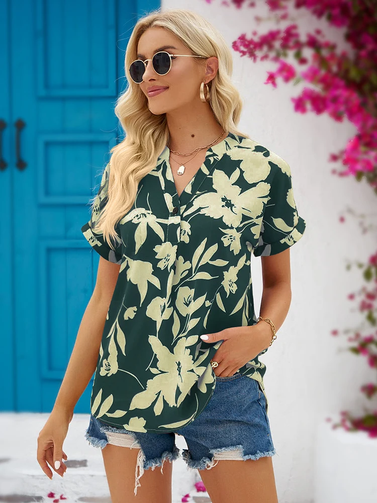 Print Flowers Casual Blouses V-Neck T-Shirts & Blouses Women's Clothes Color: Green Size: S|M|L|XL|XXL