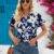 Print Flowers Casual Blouses V-Neck T-Shirts & Blouses Women's Clothes Color: Blue Size: S|M|L|XL|XXL