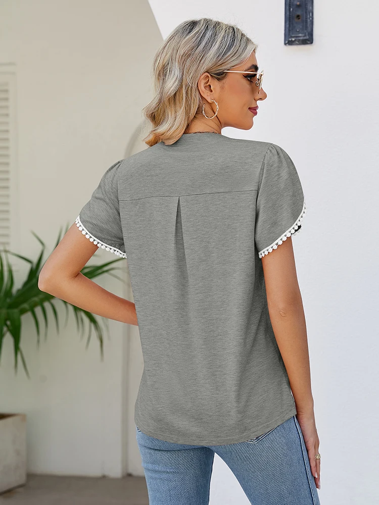 Fashion Summer T Shirt V Neck New Arrivals T-Shirts & Blouses Women's Clothes Color: Grey Size: S|M|L|XL|XXL