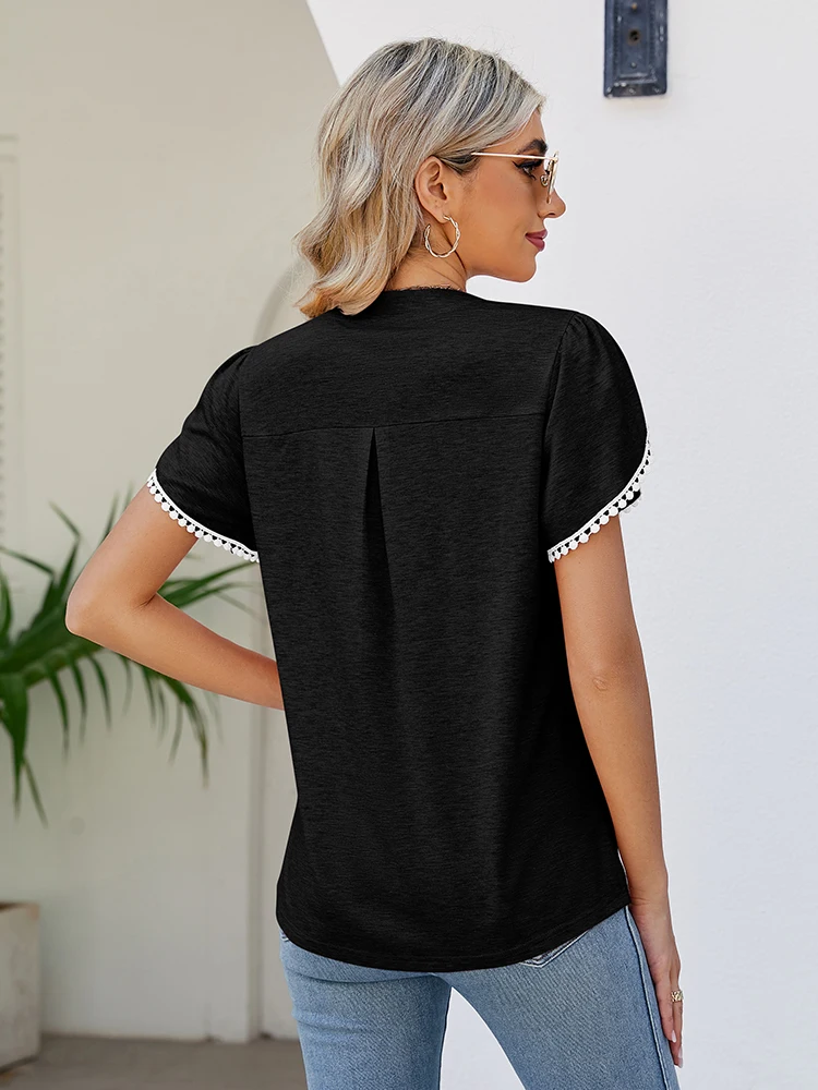 Fashion Summer T Shirt V Neck New Arrivals T-Shirts & Blouses Women's Clothes Color: Black Size: S|M|L|XL|XXL
