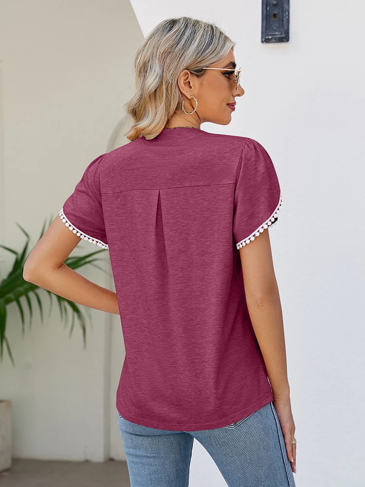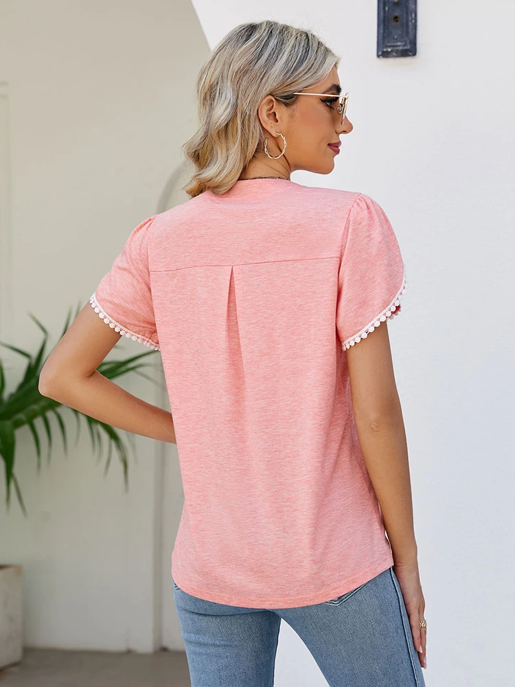 Fashion Summer T Shirt V Neck New Arrivals T-Shirts & Blouses Women's Clothes Color: Pink Size: S|M|L|XL|XXL