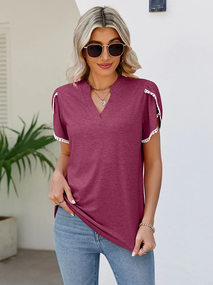 Fashion Summer T Shirt V Neck New Arrivals T-Shirts & Blouses Women's Clothes Color: Purple Red Size: S|M|L|XL|XXL