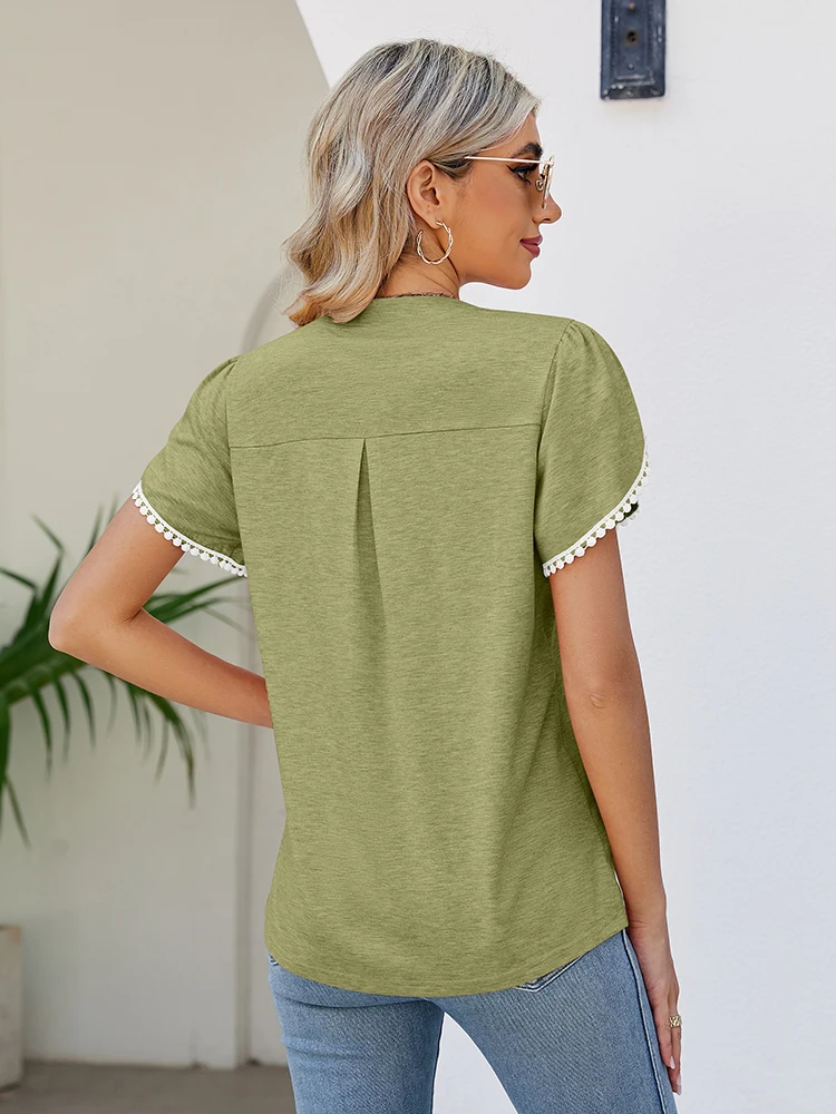 Fashion Summer T Shirt V Neck New Arrivals T-Shirts & Blouses Women's Clothes Color: Green Size: S|M|L|XL|XXL