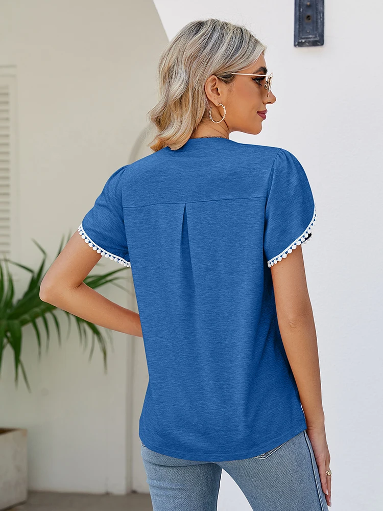 Fashion Summer T Shirt V Neck New Arrivals T-Shirts & Blouses Women's Clothes Color: Blue Size: S|M|L|XL|XXL